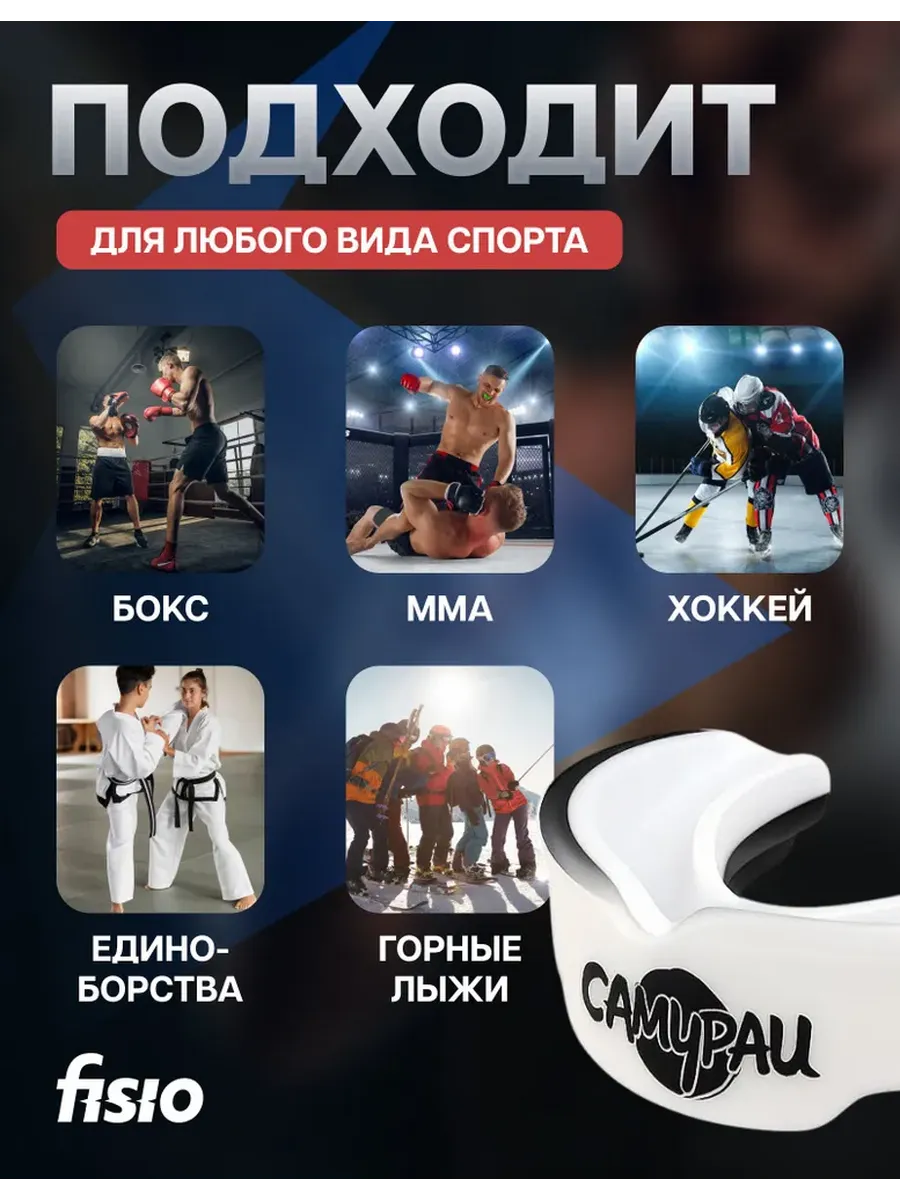 Этот аксессуар подходит для взрослых бойцов и подростков старше 12 лет, а также может использоваться после травм для дополнительной защиты. Капа предназначена для занятий различными видами спорта — от рукопашного боя до хоккея и футбола — где важна безопасность ротовой полости. Она способствует сохранению целостности зубов при интенсивных нагрузках и контактных столкновениях. Изделие подходит для использования в тренировочном процессе и соревнованиях по дзюдо, тайскому боксу (муай-тай) и другим видам единоборств. В комплекте идет удобный футляр с карабином, который позволяет легко хранить капу и брать ее с собой на тренировки или спортивные мероприятия. Видео с тренировками в приложении в подарок!