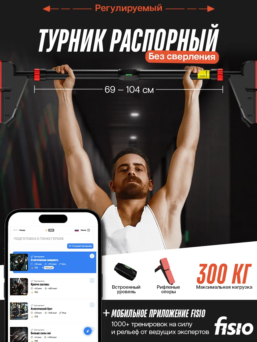 Распорный турник — ваш личный фитнес-снаряд для тех, кто любит спорт в домашних условиях, как замена похода в спортзал. Это не просто спортивная штанга или тренажер, это настоящий гимнастический портал в мир подтягиваний, отжиманий и растяжки. Хотите пресс из стали или ягодиц как у статуи? Дверной проем теперь станет вашим любимым местом для тренировок! Крепится на дверь или стену без сверления — никакой головной боли с инструментами, только удовольствие от спорта. Забудьте про скучные упражнения. Раздвижной снаряд открывает доступ к разнообразным тренировкам: хватом для подтягивания, упор для планки, место для пресса или даже уклоном — все возможно! Приседания, наклоны, йоги-практики и даже грушу и детские качели можно подвесить. Лестница или кольца — легко превращаются из обычных домашних предметов в спортивные аксессуары. А если хочется испытать физическую нагрузку на торс или ноги — этот гимнастический помощник справится и с этим. Материал из нержавеющей стали гарантирует надежность при нагрузке до 300 кг: испытано теми, кто верит в силу спорта! Даже эспандер, резинки и жгут можно закрепить для тренировки разных групп мышц. Хватом широкий или узкий — решайте сами. Любите необычную форму упражнений? Добавьте канат или используйте петли тренировочные. А если дома шумно и дети хотят поиграть — этот спортивный друг выдержит детские шалости. Переходим к главному бонусу: видео тренировки доступны прямо в мобильном приложении! Не знаете с чего начать? Просто выберите подходящую тренировку и следуйте за виртуальным наставником. Отжимания на пресс, укрепление торса или растяжки после долгого рабочего дня теперь всегда под рукой. Включайте музыку погромче и устраивайте фитнес-вечеринку прямо у себя дома!