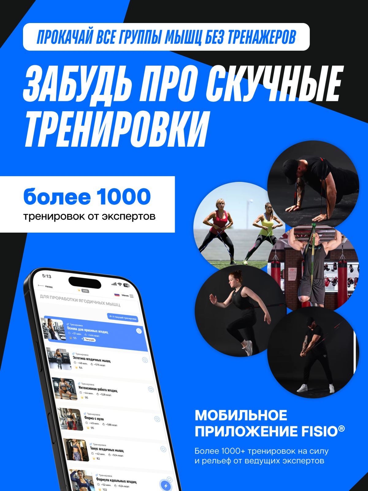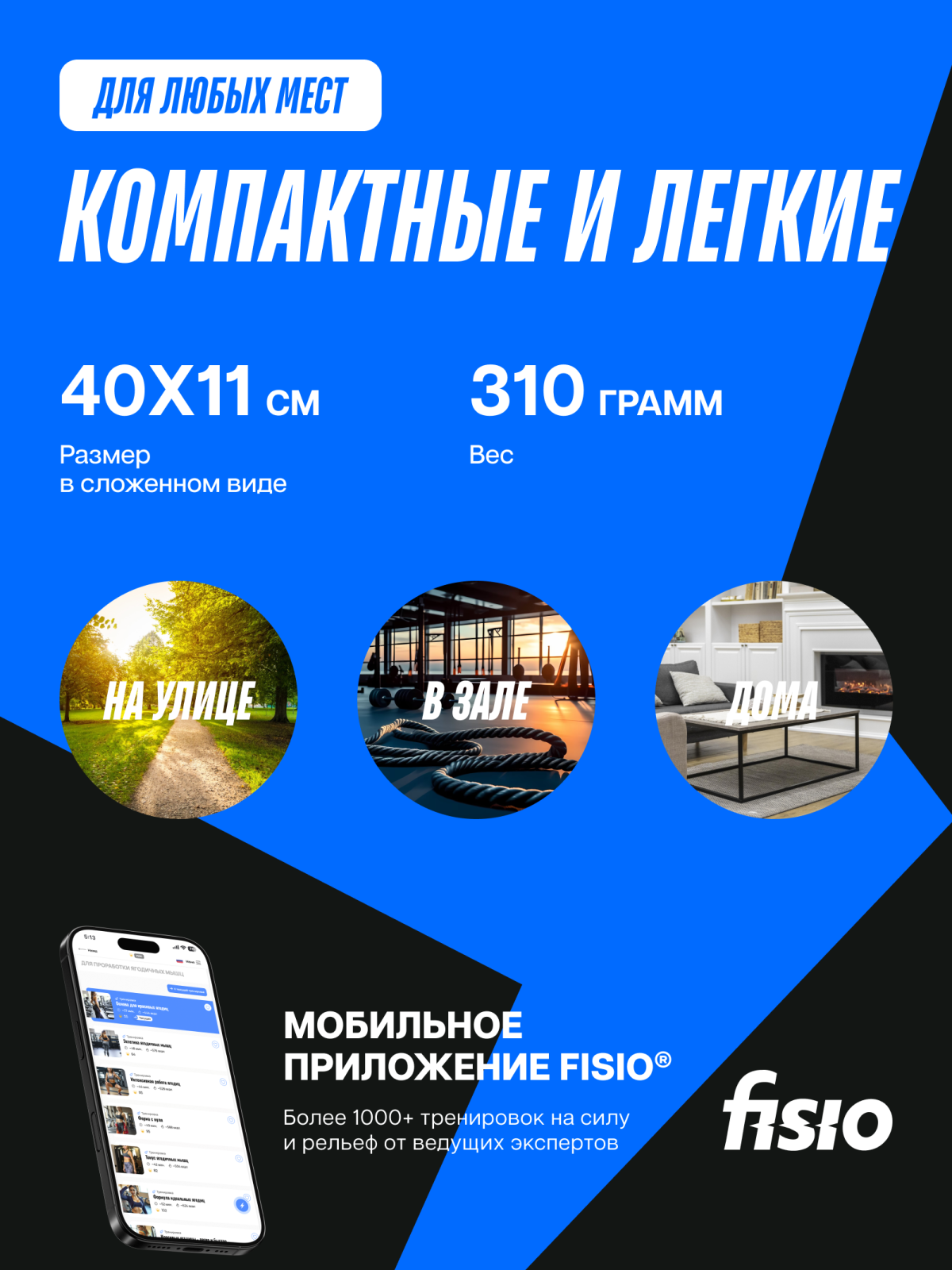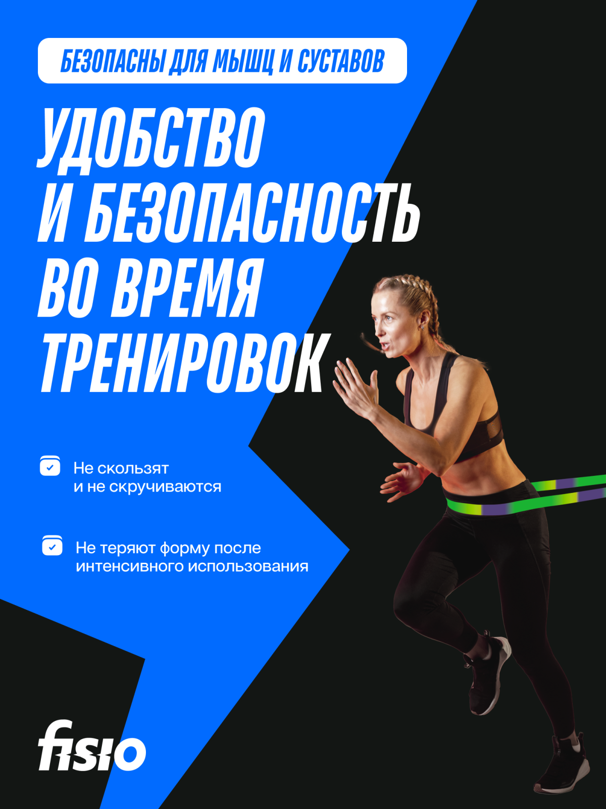 В комплекте мобильное приложение FISIO c доступом на 1 месяц с готовыми тренировками на фитнес-резинках!