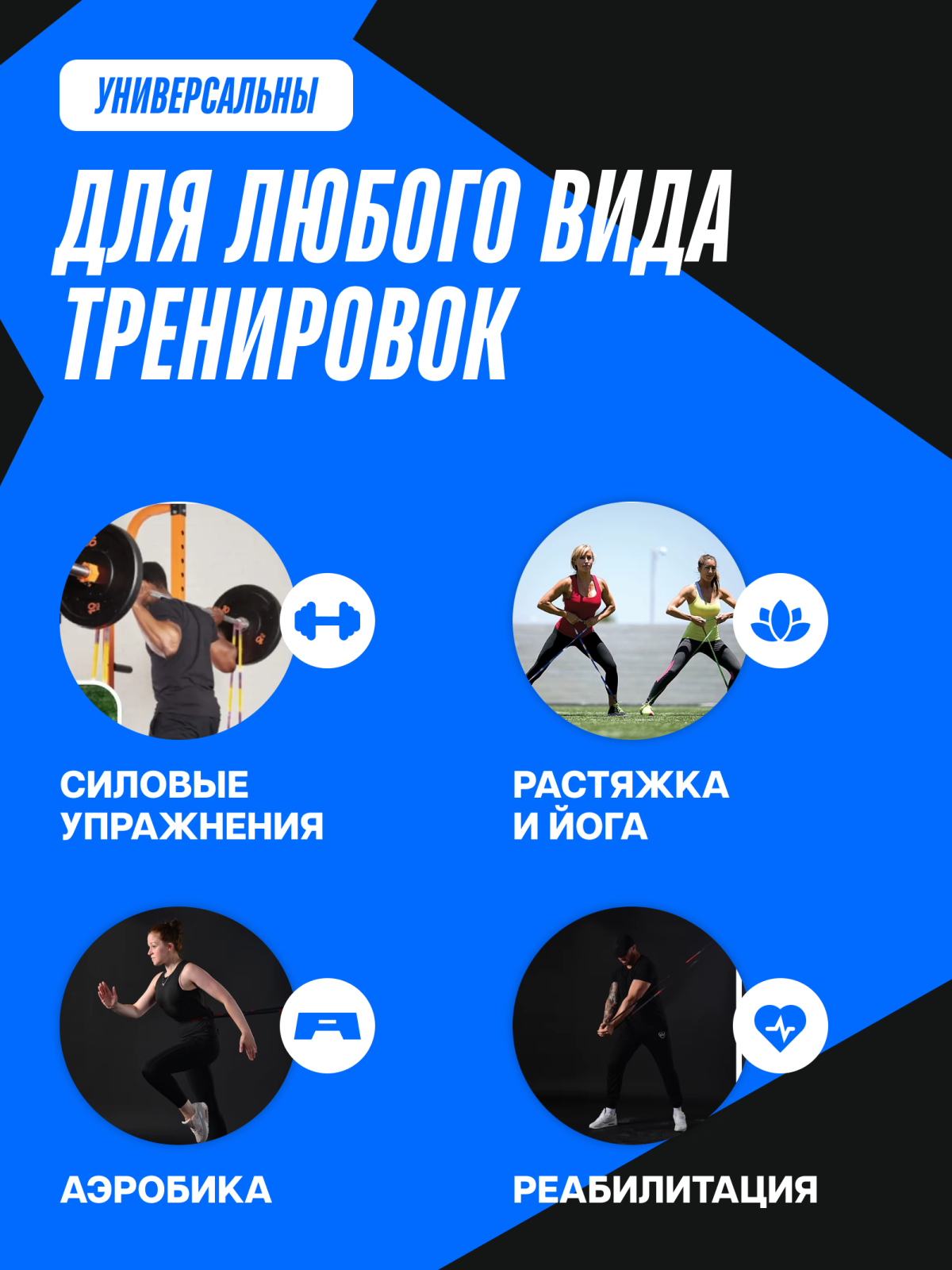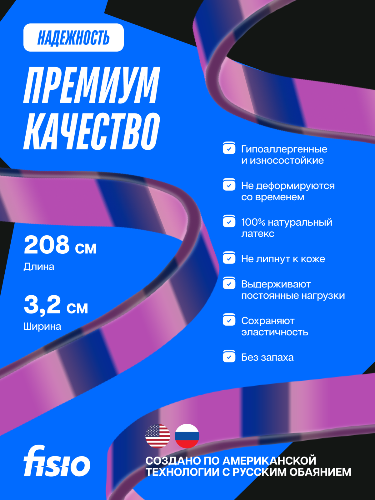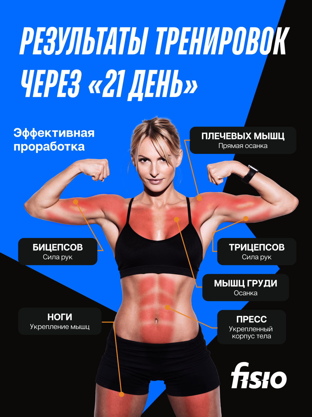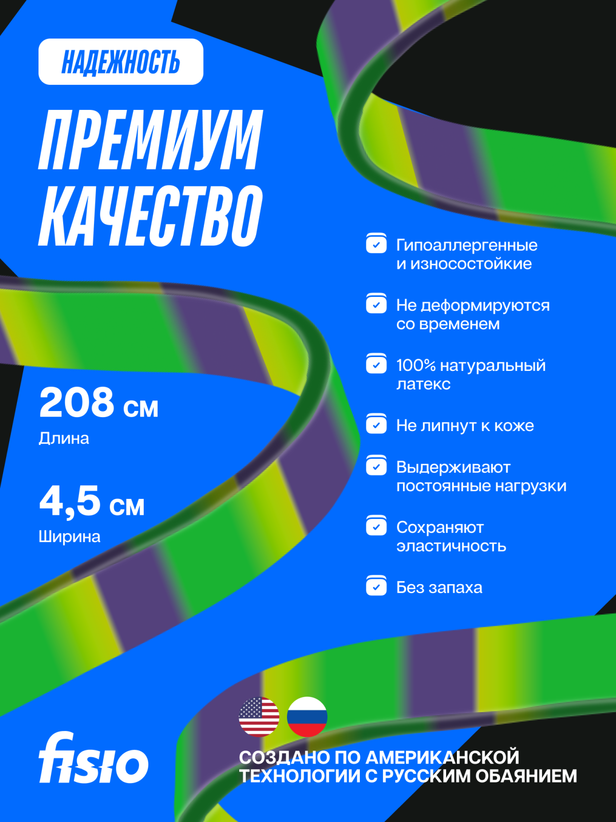 В комплекте мобильное приложение FISIO c доступом на 1 месяц с готовыми тренировками на фитнес-резинках!